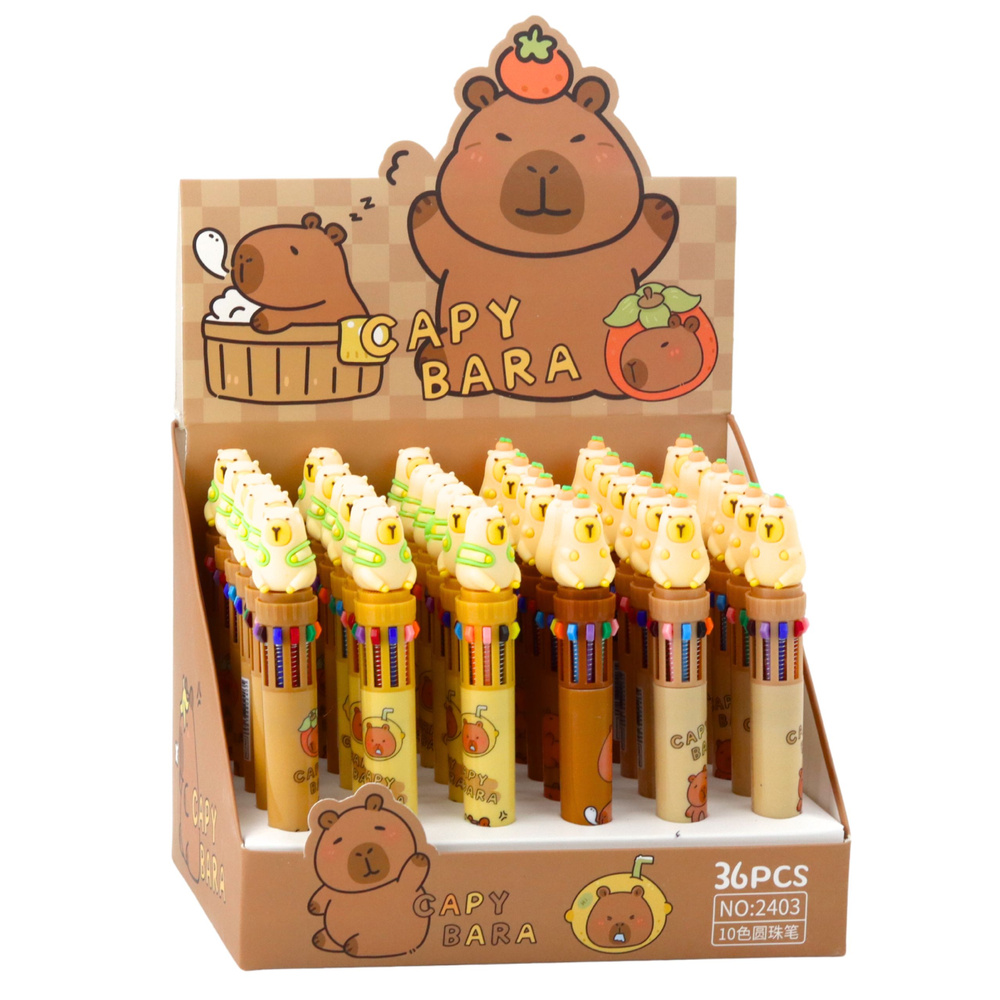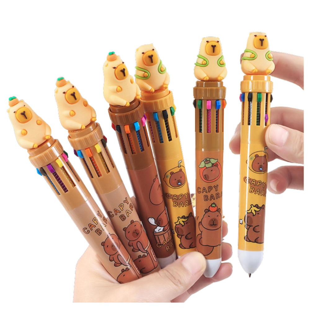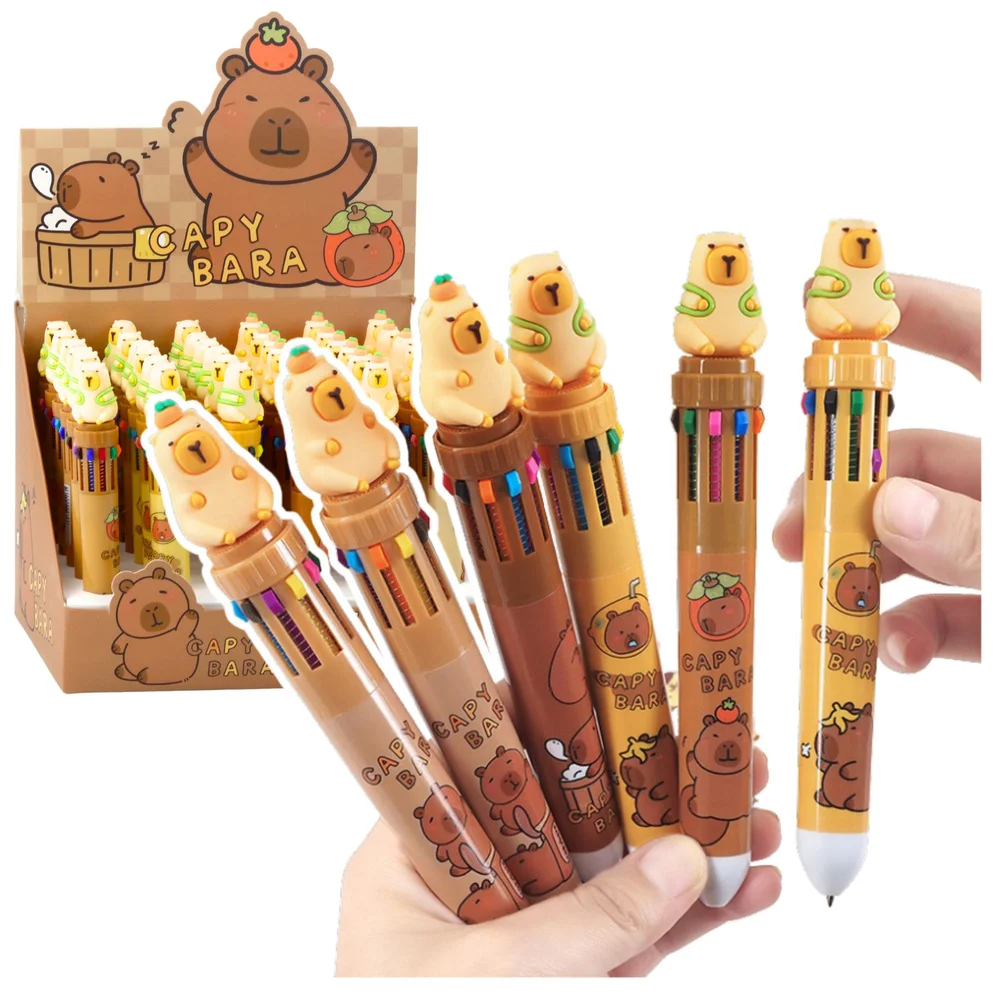 Ten uroczy wielokolorowy długopis z motywem kapibary to doskonały dodatek do każdego piórnika. Jego unikalny design łączy funkcjonalność z estetyką – ozdobna gumowa figurka kapibary na szczycie długopisu przyciąga wzrok i sprawia, że korzystanie z niego staje się prawdziwą przyjemnością.