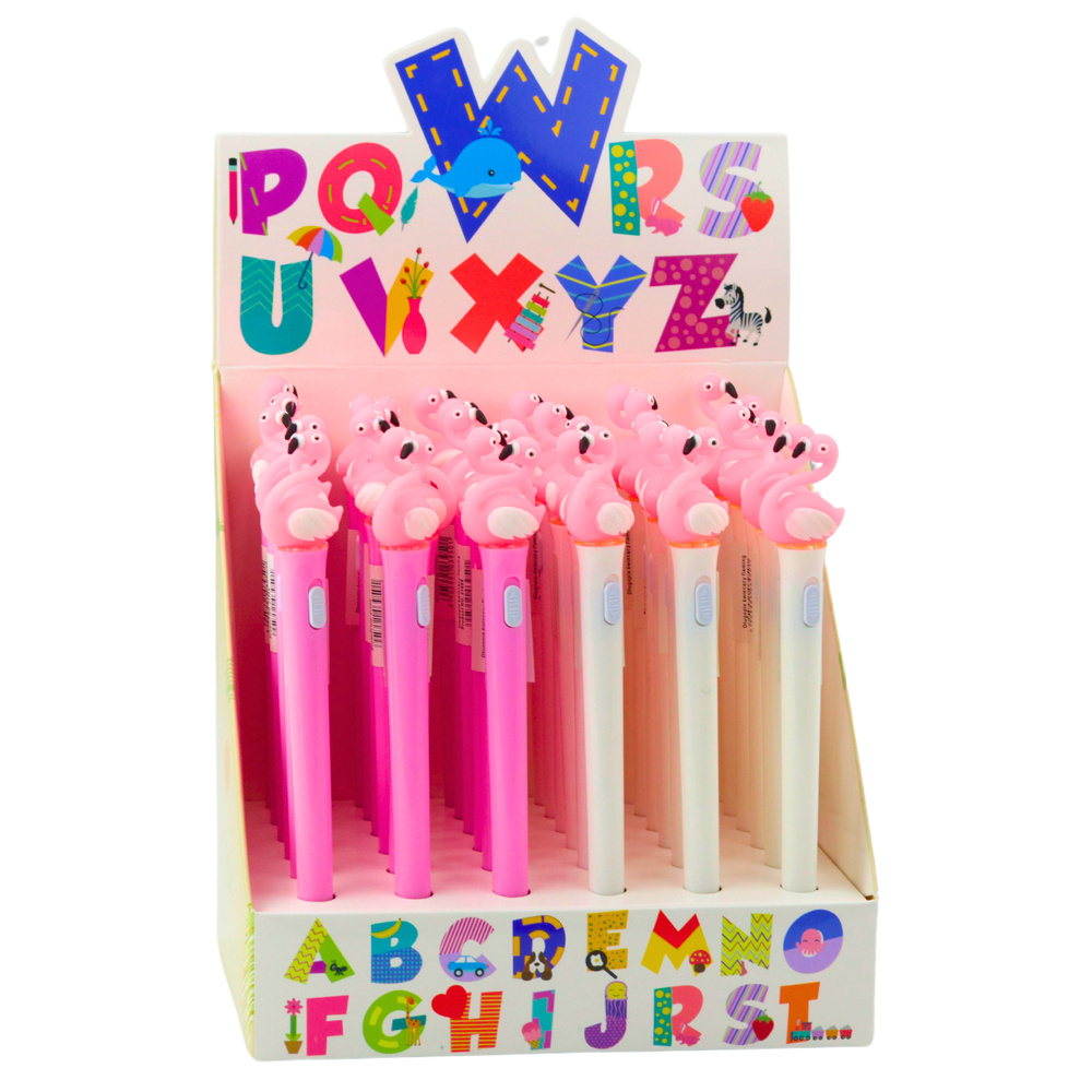 DŁUGOPIS ŚWIECĄCY FLAMING Z GUMKĄ, ZATYCZKĄ I ŚWIATEŁKIEM LED