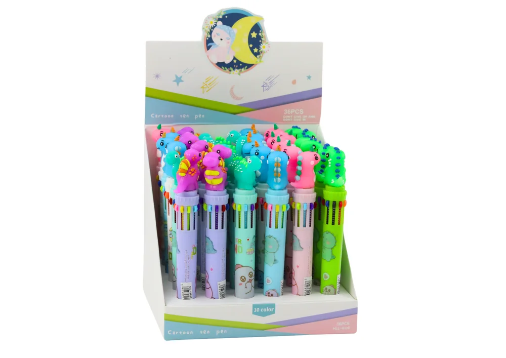 Ten funkcjonalny długopis łączy w sobie zabawę i praktyczność, oferując aż 10 kolorów w jednym narzędziu do pisania.