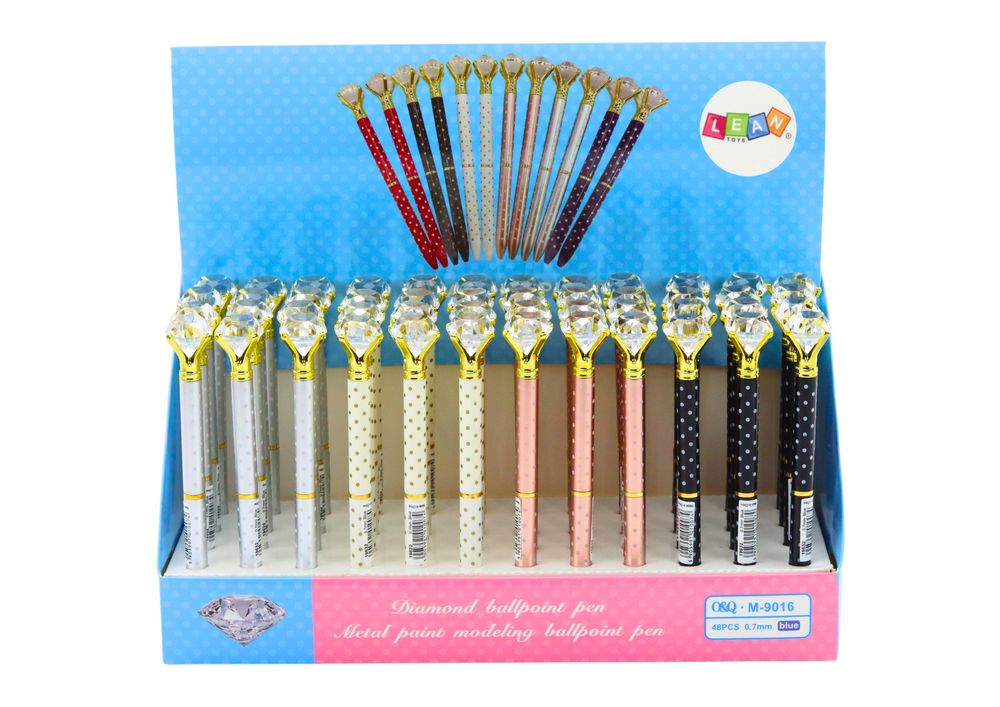 Ten wyjątkowy długopis to połączenie elegancji i funkcjonalności. Na jego końcu znajduje się duży mieniący się diament, który nadaje mu eleganckiego wyglądu.