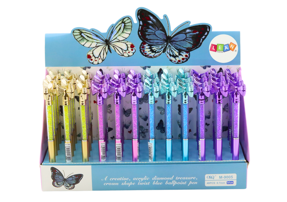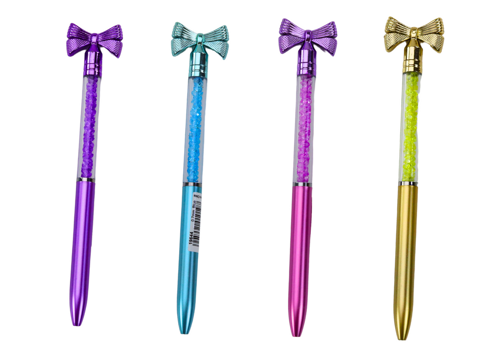Ten wyjątkowy długopis to połączenie elegancji i funkcjonalności. Na jego końcu znajduje się kokardka, która nadaje mu eleganckiego wyglądu. Przeźroczysta obudowa, wypełniona malutkimi, błyszczącymi diamencikami, tworzy efektowne refleksy świetlne, które podkreślają jego luksusowy charakter.