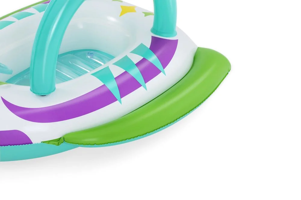 Jeżeli Twoje dziecko uwielbia spędzać czas w wodzie, bądź dopiero oswaja się z wodą, zaopatrz je w pontonik do pływania. Ponton jest lekki i poręczny po złożeniu nie zajmuje dużo miejsca przez co z łatwością będzie można go przetransportować. Ciekawe kolory dodatkowo zachęcą Twoje dziecko do zabawy w wodzie. Ponton przeznaczony jest dla dzieci w wieku od 3 roku życia. Dodatkowy atutem jest dmuchane dno oraz daszek, które zapewnią, że maluch będzie czuł się komfortowo. Wbudowana kierownica z klaksonem zapewni dodatkową atrakcje. Łódka wykonana jest z wytrzymałego winylu odpornego na uszkodzenia.