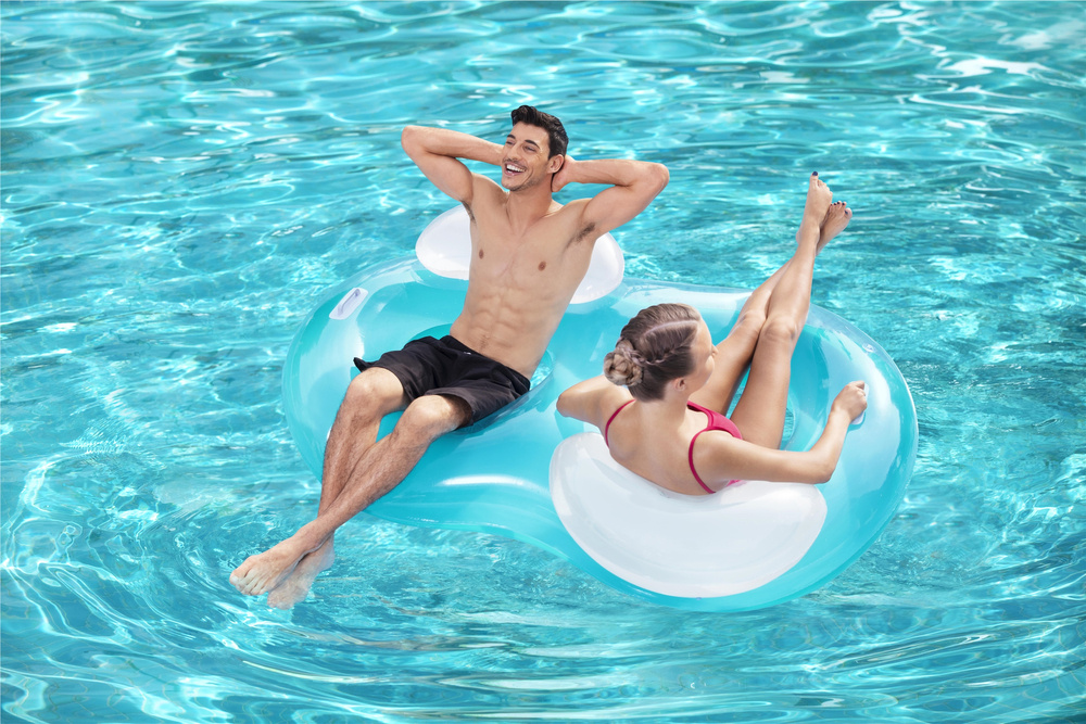 Wybierając się nad wodę warto zabrać ze sobą wszystkie niezbędne akcesoria basenowe, świetnym dodatkiem do wodnego relaksu i zabawy będzie dmuchane koło do pływania. Koło przeznaczone jest dla dwóch osób. Ciekawa konstrukcja umożliwi wspólne spędzenie czasu z najbliższą osobą na wyciągnięcie ręki. Koło jest wygodne i stabilne na wodzie. Wykonane jest z wytrzymałego materiału PVC odpornego na uszkodzenia i działanie promieni słonecznych. Posiada wbudowane wygodne zagłówki, oraz uchwyty na picie. Łatwe do nadmuchania, opróżniania i przechowywania koło do pływania zapewni Ci relaks przez całe lato.