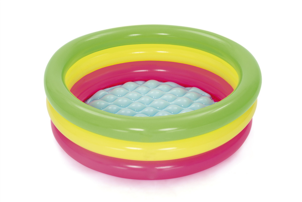 Niewielki basenik w ciekawej kolorystyce pozwoli zapewnić Twojemu dziecku ruch i zabawę w wodzie. Zaprojektowany został, aby zachęcić dzieci do ruchu i dobrej zabawy na świeżym powietrzu, Dzięki swoim niewielkim wymiarom idealnie nadaje się dla dzieci w wieku od 2 lat. Jest łatwy do nadmuchania i opróżnienia dzięki czemu przechowywanie go nie będzie sprawiało problemów. Jego trzy pierścieniowa konstrukcja sprawia, że basen jest mocniejszy i bardziej wytrzymały. Miękkie, nadmuchiwane podłoże zapewnia wygodne dla najmłodszych.