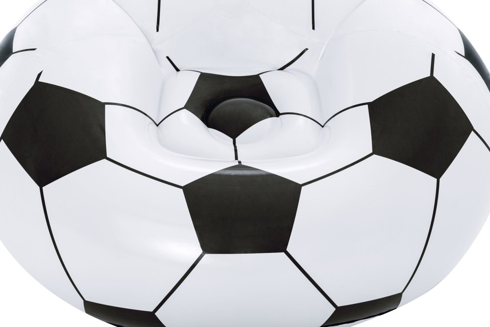 Ciekawy wzór z pewnością przykuje uwagę każdego małego kibica. Od teraz oglądanie ulubionych meczy będzie jeszcze przyjemniejsze. Wygodny fotel z oparciem zapewni chwilę relaksu najmłodszym, idealnie sprawdzi się też podczas nauki, bądź czytania książek na tarasie. Konstrukcja fotela zapewni maksymalny komfort, niezależnie od tego, jaką pozycję się w nim przyjmie. Ponadto doskonale nadaje się do użytku w pomieszczeniach i na zewnątrz. Jest stworzony z wytrzymałego materiału PVC, dzięki czemu nie będziesz musiał martwić się o uszkodzenia. Dołączona do zestawu łatka naprawcza zagwarantuje Ci dodatkową ochronę przed niechcianymi uszkodzeniami.