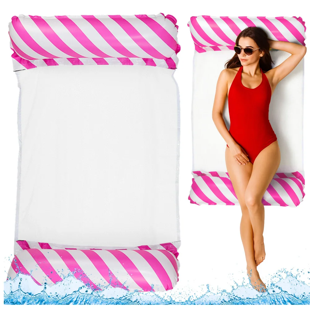 Dmuchany hamak wodny to doskonały wybór na letni relaks nad jeziorem, basenem lub w spokojnych wodach morza. Dzięki ergonomicznej konstrukcji złożonej z dwóch niezależnych, dmuchanych poduszek połączonych elastyczną i przewiewną siatką nylonową, hamak zapewnia komfortową pozycję półleżącą. Ciało użytkownika jest częściowo zanurzone w wodzie, co pozwala na naturalne chłodzenie organizmu, a jednocześnie umożliwia wygodne opalanie się w pełnym słońcu.