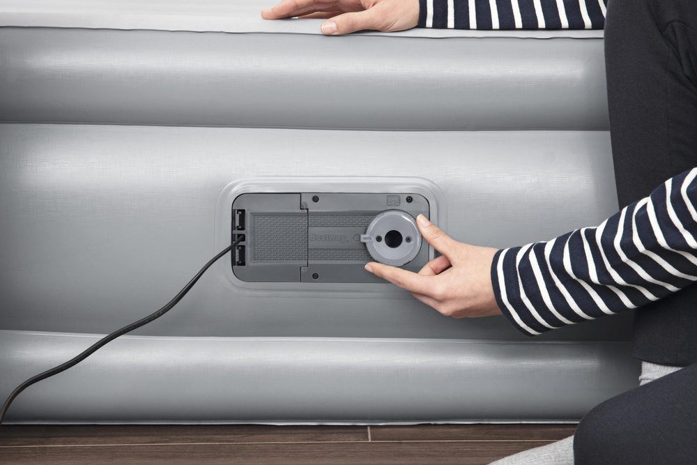 - Wbudowana pompka 220-240V dzięki czemu materac jest napompowany już w 5 minuty