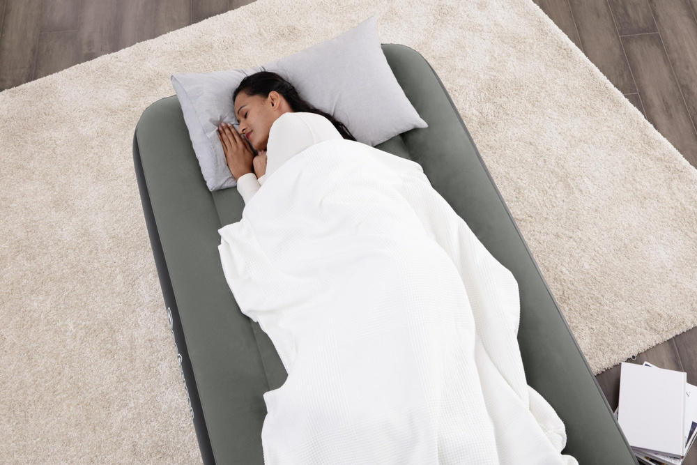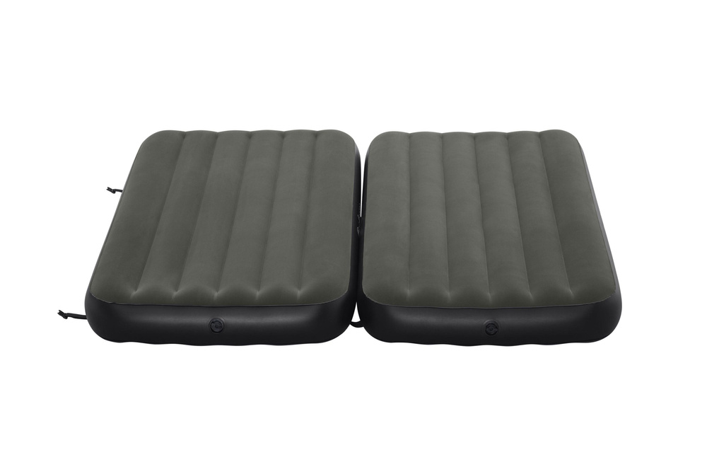 Dwuosobowy materac turystyczny przeznaczony jest do użytku zarówno wewnętrznego jak i zewnętrznego. Został wykonany z wytrzymałego materiału PVC, dzięki czemu jest odporny na uszkodzenia. W swojej górnej części pokryty jest miękkim welurem. Materac dopasowuje się do ciała i idealnie sprawdzi się pod namiotem lub w domu jako zapasowe łóżko dla gości. Jeżeli potrzebujesz materaca podczas wyjazdu nad wodę bądź plaże bez problemu możesz z niego korzystać. Napompowanie go nie zajmie Ci dużo czasu, po skończonym odpoczynku w równie łatwy sposób wypuścisz z niego powietrze i przetransportujesz go. Specjalnie zaprojektowany z myślą o jędrności, materiał ten minimalizuje utratę powietrza przez całą noc. Materiał Tritech zwiększa wewnętrzną odporność na rozciąganie i zapewnia wyprofilowane wsparcie dla całonocnego komfortu. Ten wytrzymały, przetestowany pod kątem warunków skrajnych materiał jest w stanie wytrzymać cały ciężar i ruch, który zapewnia doskonały sen. Materac może być używany na trzy różne sposoby za pomocą łatwych do założenia klamer. Może być używany oddzielnie jako dwa łóżka pojedyncze, połączone razem, tworząc duże łóżko typu King lub ułożone na sobie, tworząc dwuwarstwowe łóżko pojedyncze.