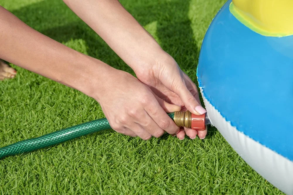 Chciałbyś zapewnić swojemu dziecku niezapomnianą zabawę w zaciszu twojego ogrodu? Dmuchany plac zabaw pozwoli zamienić go w prawdziwe centrum rozrywki dla twojego dziecka. Basen z dmuchanymi atrakcjami takimi jak dmuchana zjeżdżalnia,wodna fontanna, z pewnością zachwyci Twojego malucha i stanie się jego ulubionym miejscem do zabawy. Basen wykonany jest z miękkiego lecz trwałego materiału i jest jak najbardziej bezpieczny dla najmłodszych pociech. Kolorowy basen w kształcie chmurki z pewnością przyciągnie wzrok każdego dziecka.