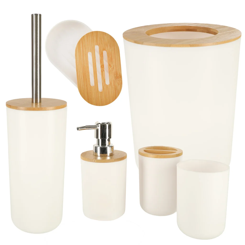 Zestaw łazienkowy szczotka dozownik komplet 6 elementów do WC biały