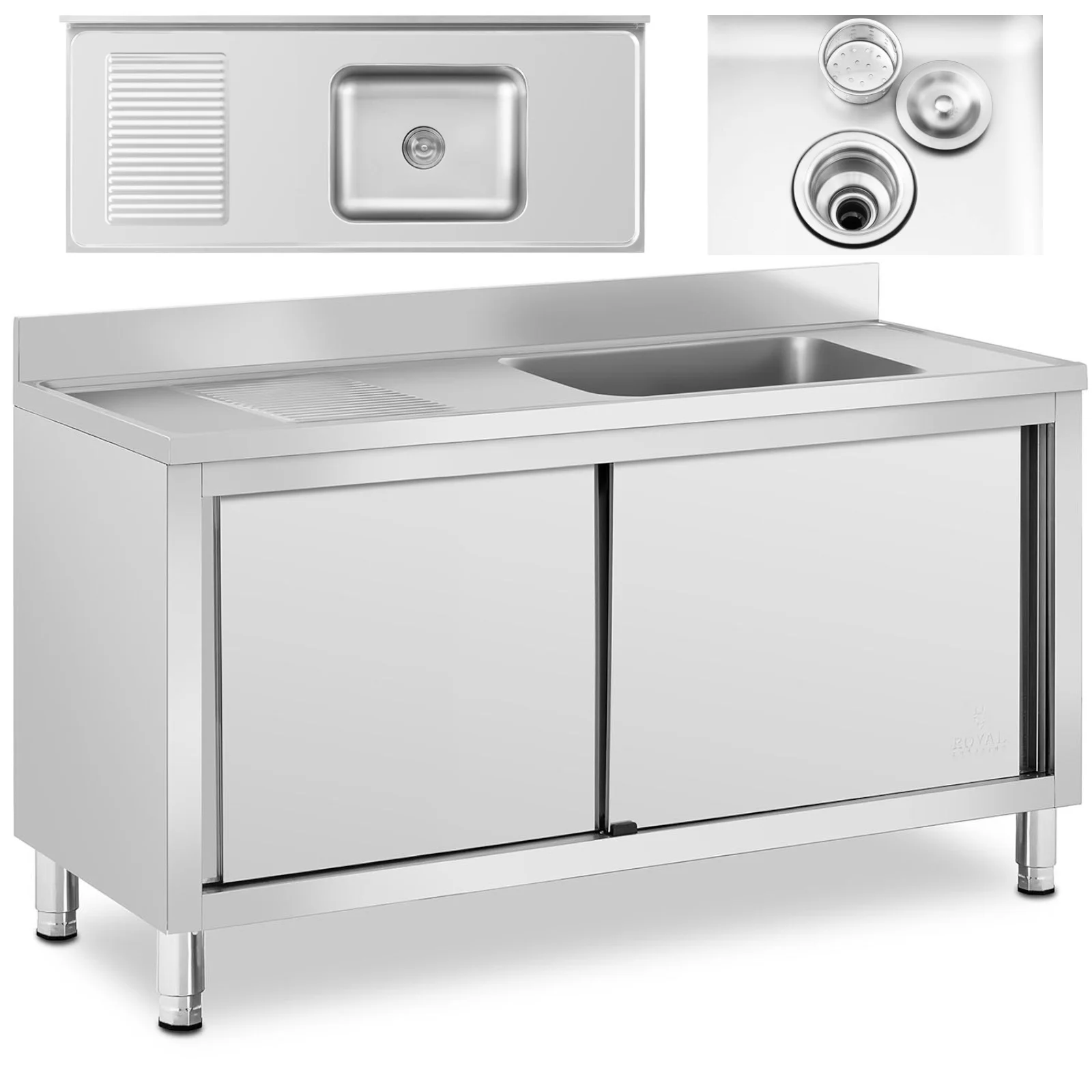 Zlew basen gastronomiczny jednokomorowy z szafką z drzwiami przesuwnymi prawy 140 x 60 x 94.5 cm