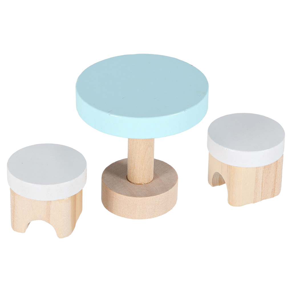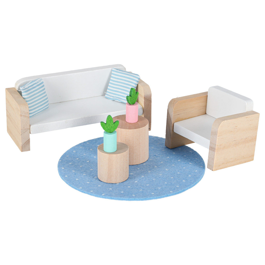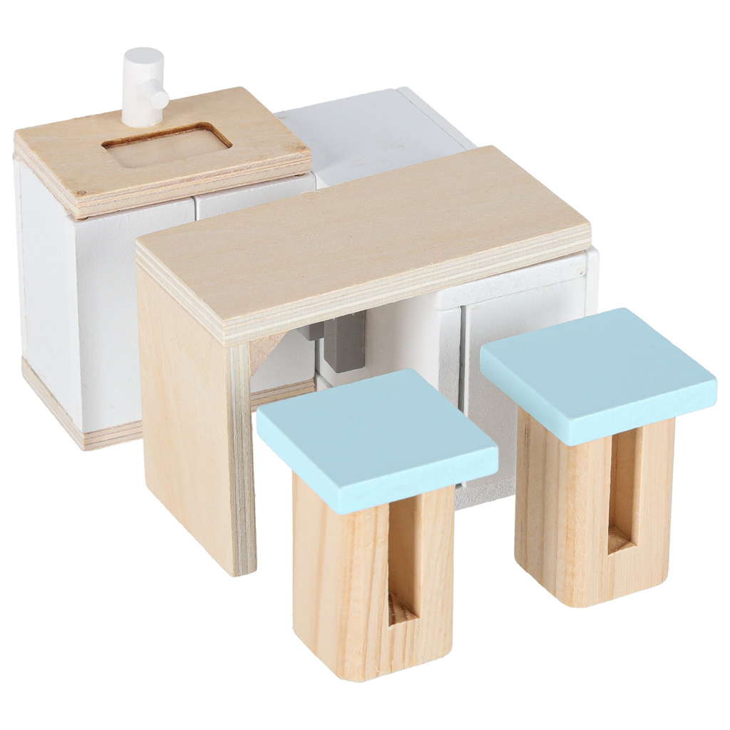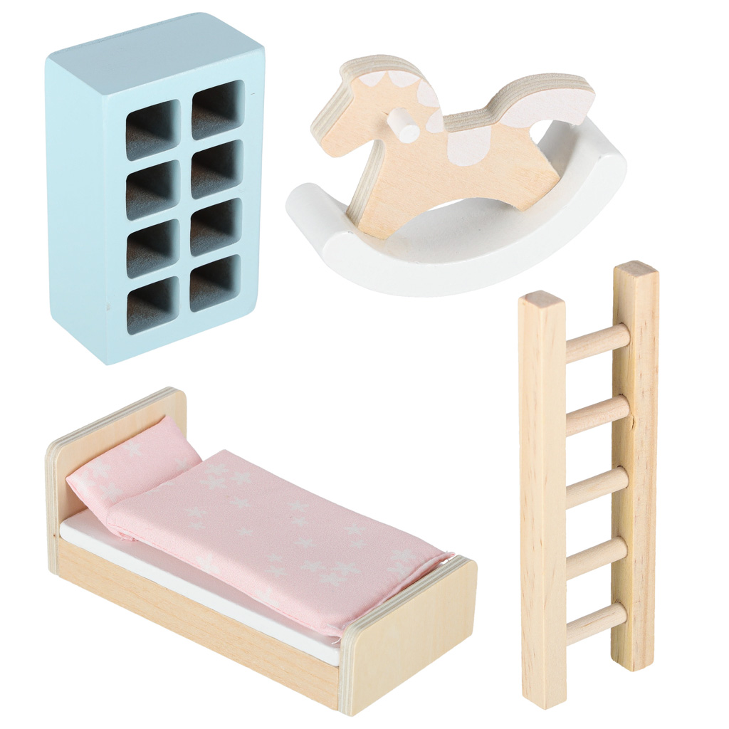 Ma poręczne drewniane mebelki – przestawianie mebelków pozwala ćwiczyć małą motorykę dziecka oraz koordynację ręka-oko