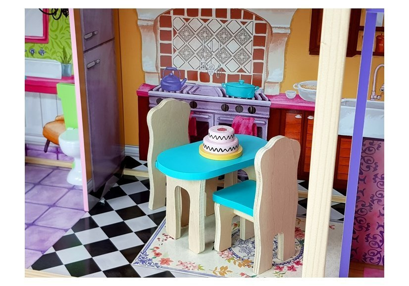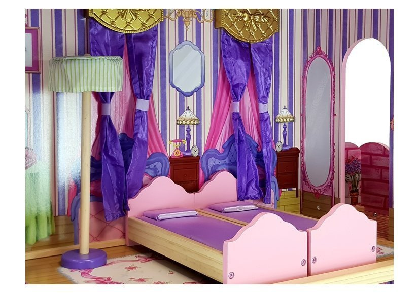 W pełni wyposażony drewniany domek dla lalki to propozycja, którą każda młoda dama musi mieć w swoim pokoju. Zabawa w rodzinę i zabawa lalkami jest jednym z ulubionych zajęć małych dziewczynek. Zabawka pozwala na stworzenie własnego, niepowtarzalnego domu, którym dziecko może urządzić wedle własnego gustu. Konstrukcja domku jest bardzo przemyślana i sprytna. Domek może stanowić piękną ozdobę pokoju małej księżniczki. Domek odznacza się nowoczesnym, rzeczywistym wyglądem, a także bogatym wyposażeniem.
