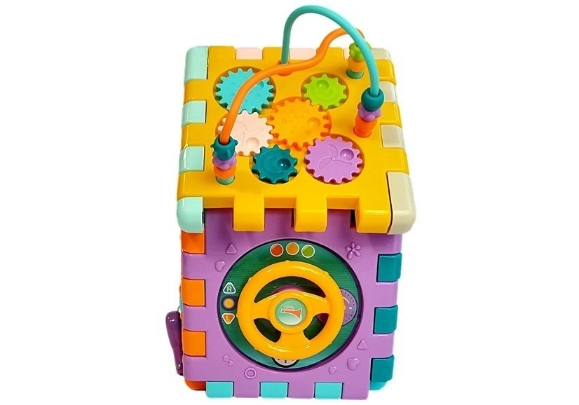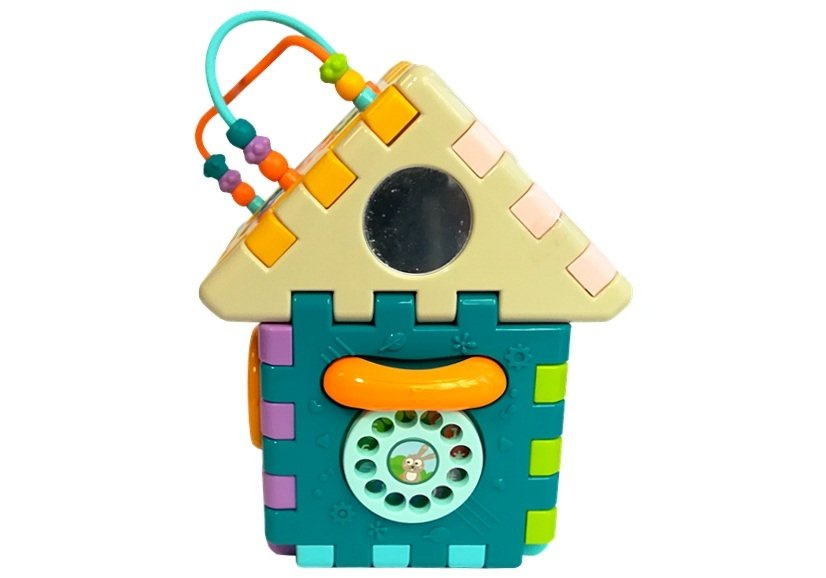 Zabawka w kształcie domu posiada cztery ściany boczne a dodatkowo kilka funkcji znajduj się na dachu. Każda ze ścianek jest inna, gdy tylko przejdzie do następnej, zaskoczy ją to całkiem nowymi zabawami i nowymi bodźcami. Kostka odznacza się solidnym wykonaniem z atestowanych materiałów, a także urozmaiconą kolorystyką i wzornictwem, które przyciągną uwagę malucha i da mu dużo radości.