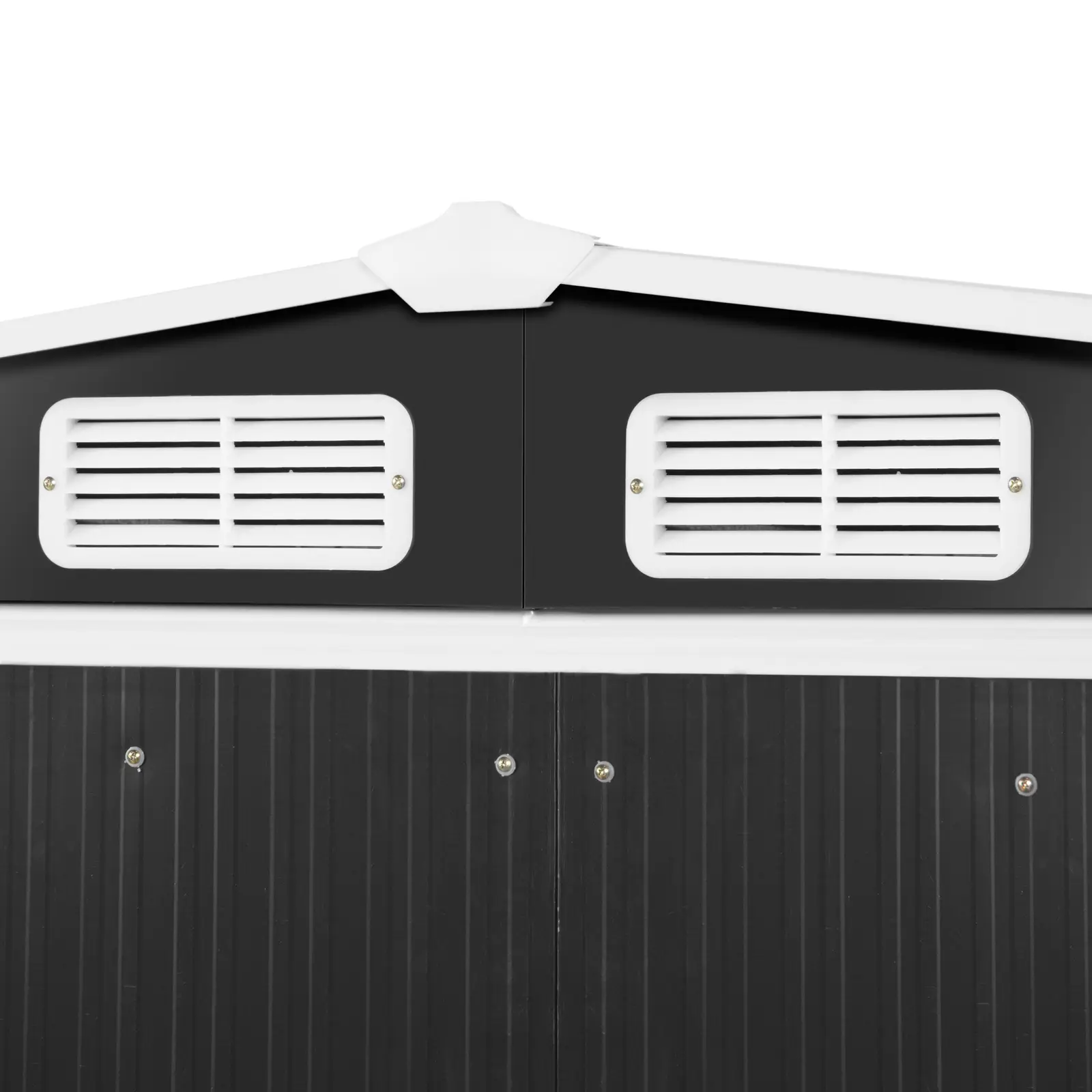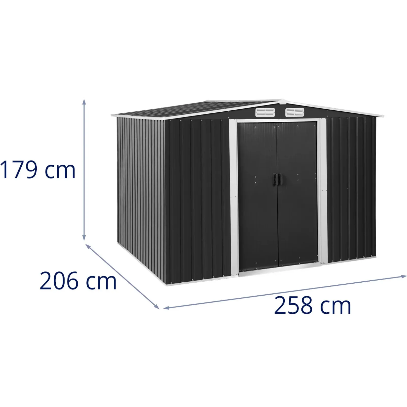 Metalowy domek narzędziowy to praktyczne rozwiązanie do przechowywania sprzętu ogrodniczego, zabawek oraz narzędzi. Jego wymiary 206 x 179 x 258 cm oferują wystarczającą przestrzeń, aby pomieścić nawet meble czy rowery.