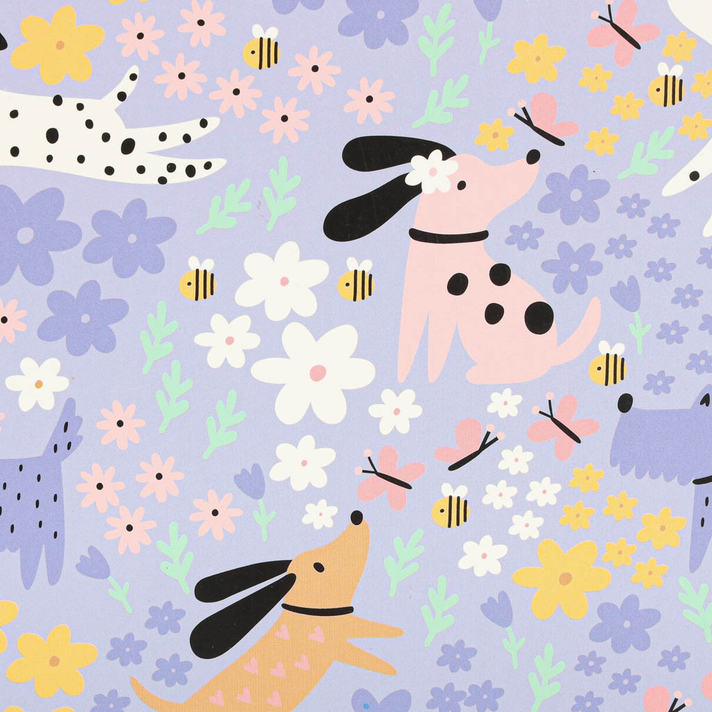 Kolor: fioletowy z motywem kwiatków i piesków