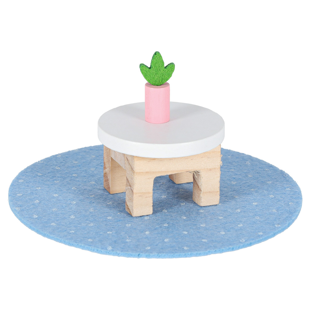 Mini domek dla lalek w poręcznej walizce sprawdzi się jako prezent dla dziecka z okazji urodzin lub świąt. Walizka po otwarciu zmienia się w dwupiętrowe mieszkanie. W zestawie są domowe mebelki takie jak łóżko z posłaniem czy sofa, a także elementy sklepu takie jak lada lub kasa sklepowa.