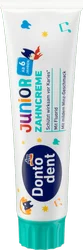 Pasta do zębów Dontodent Junior to doskonały wybór dla dzieci powyżej 6. roku życia. Dzięki odpowiedniej zawartości fluoru, utwardza wrażliwe szkliwo i wzmacnia zęby, chroniąc je przed próchnicą. Jej świeży, łagodny miętowy smak sprawia, że mycie zębów staje się przyjemnością.