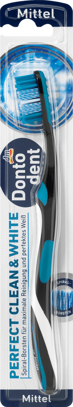 Szczoteczka do zębów Dontodent Perfect Clean&White sprzyja naturalnemu wybielaniu zębów i skutecznie czyści. Jej średnia twardość oraz specjalnie zaprojektowana główka z wysokowydajnym, skręconym włosiem zapewniają maksymalną efektywność czyszczenia.