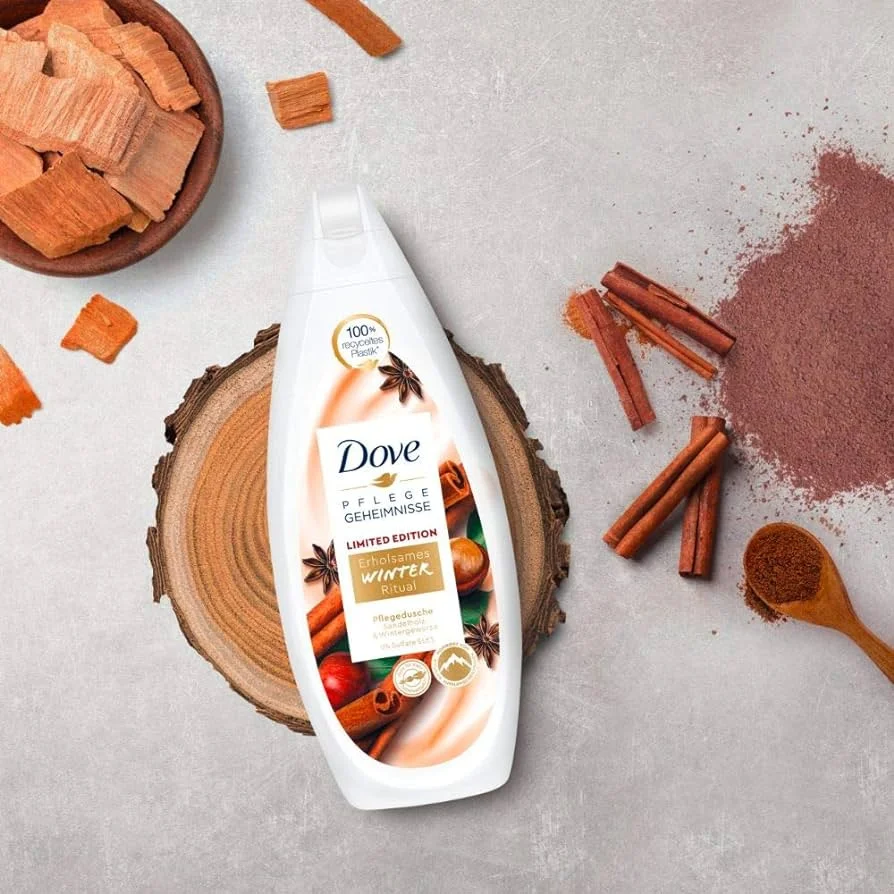 Dove Winter Ritual to luksusowy żel pod prysznic, który intensywnie regeneruje suchą zimową skórę. Dzięki unikalnej formule z drzewem sandałowym i zimowymi przyprawami, produkt ten zapewnia głęboką pielęgnację i odżywienie, przywracając skórze naturalną miękkość.