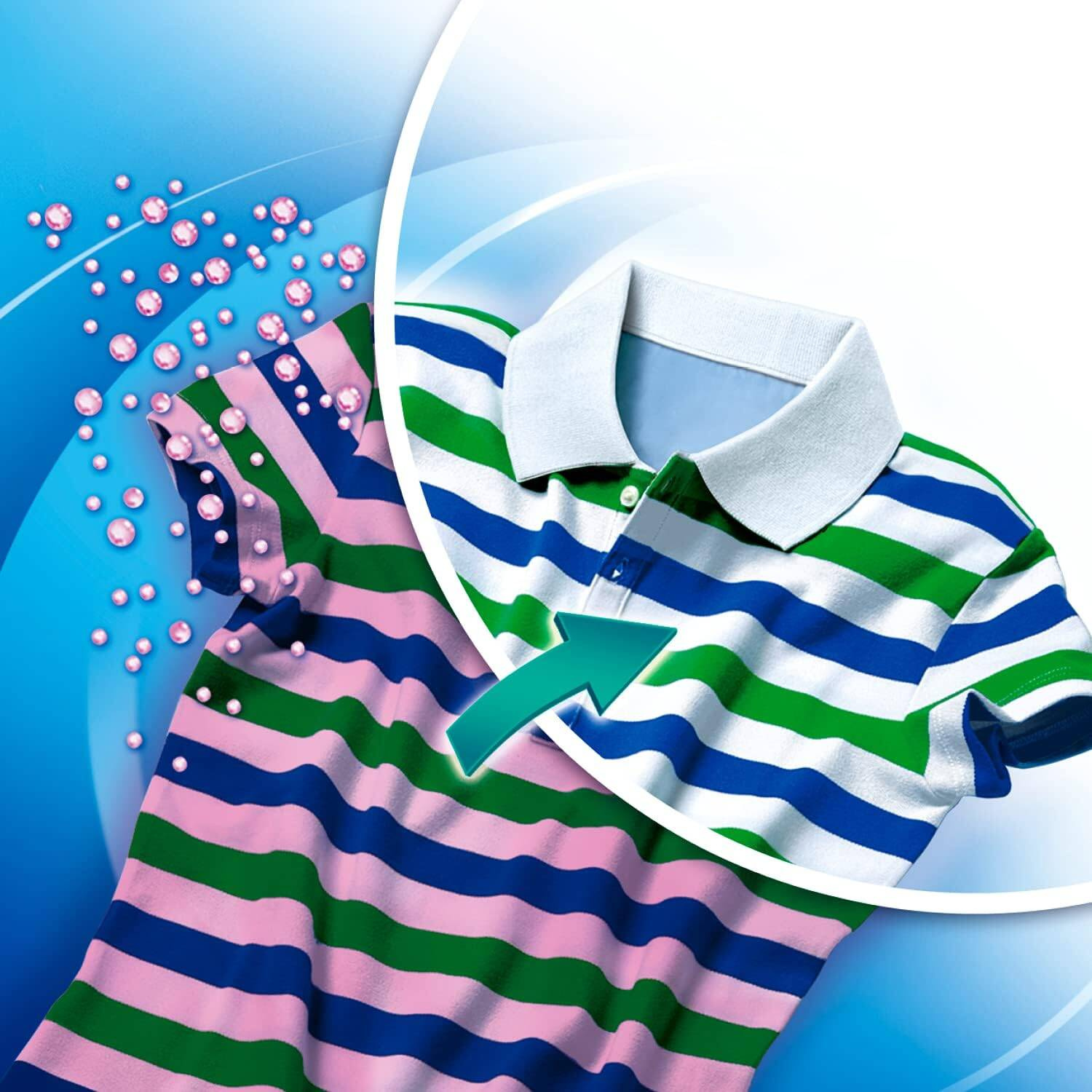 Środek działa skutecznie nawet na uporczywe przebarwienia, pozostawiając tkaniny czyste i odnowione. Wystarczy rozpuścić 200 g środka w 6 litrach gorącej wody (od 30 °C). Dla niewielkich plam można użyć tylko połowy torebki. Następnie włóż do wody do 1,5 kg odbarwionego prania, całkowicie je zanurzając, bez dodatku detergentu.