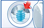 Specjalnie wyprofilowane wypustki zmiękczają pranie, redukują zmarszczki oraz przygotowują je do prasowania. Technologia zastosowana w tej kuli oddziela poszczególne włókna, co pozwala na oszczędność energii i czasu podczas suszenia.