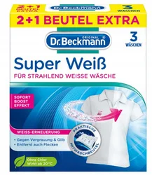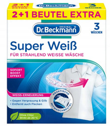 Białe pranie z czasem traci swoją jasność, co jest efektem częstego prania w niskich temperaturach oraz osadzania się kamienia w detergentach. Dr. Beckmann Super White skutecznie usuwa szarzenie, przywracając białemu praniu blask i świeżość, nawet po kolejnych praniach.