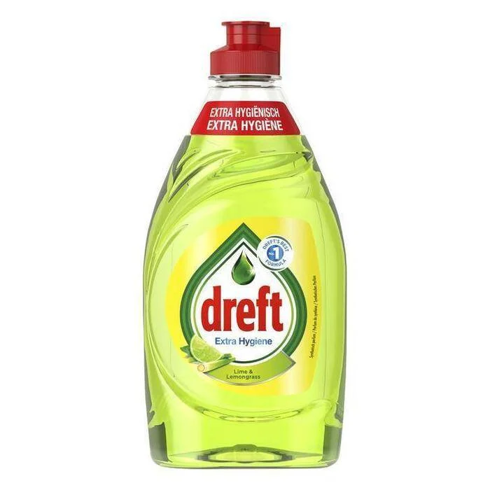 Płyn do mycia naczyń Dreft Lime & Lemongrass to skuteczny sposób na pozbycie się tłuszczu. Dzięki skoncentrowanej formule wystarczy tylko kropla, aby uzyskać znakomity efekt. Produkt szybko usuwa zanieczyszczenia, nadając naczyniom olśniewający połysk.