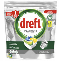Opakowanie zawiera 34 sztuki. Zadbaj o swoje naczynia i zmywarkę z Dreft Platinum All in One Citron! Zamów już dziś i ciesz się doskonałą czystością po każdym zmywaniu.