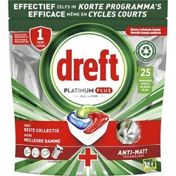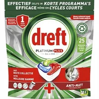 Tabletki do zmywarki Dreft Platinum Plus All in One oferują rozwiązanie do efektywnego czyszczenia naczyń, gwarantując doskonałe rezultaty nawet przy krótkich cyklach. Dzięki innowacyjnej formule łączącej płyn i proszek w jednej kapsułce, Dreft Platinum Plus All in One skutecznie usuwa uporczywe resztki jedzenia oraz tłuszcz, przywracając naczyniom ich naturalny blask.