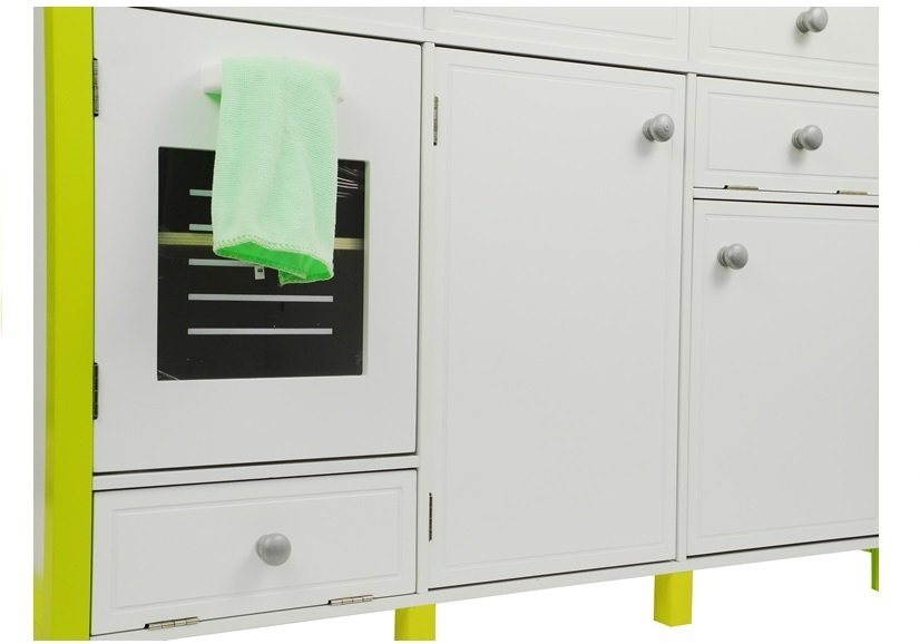 Drewniana Kuchnia Dla Dzieci Zielono Biała Paula Otwierane Elementy
