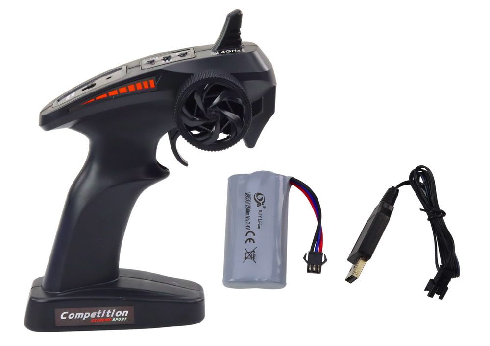 Sterowanie samochodem odbywa się za pomocą zaawansowanego pilota 2.4 G, który zapewnia pełen zakres ruchów i precyzyjną kontrolę nad pojazdem. Dzięki temu użytkownik może łatwo manewrować samochodem, wykonując ruchy, takie jak skręty, cofanie czy przyspieszanie. Pilot 2.4 G gwarantuje stabilne połączenie i szybkie reakcje, co jest kluczowe podczas intensywnych wyścigów i zabaw.