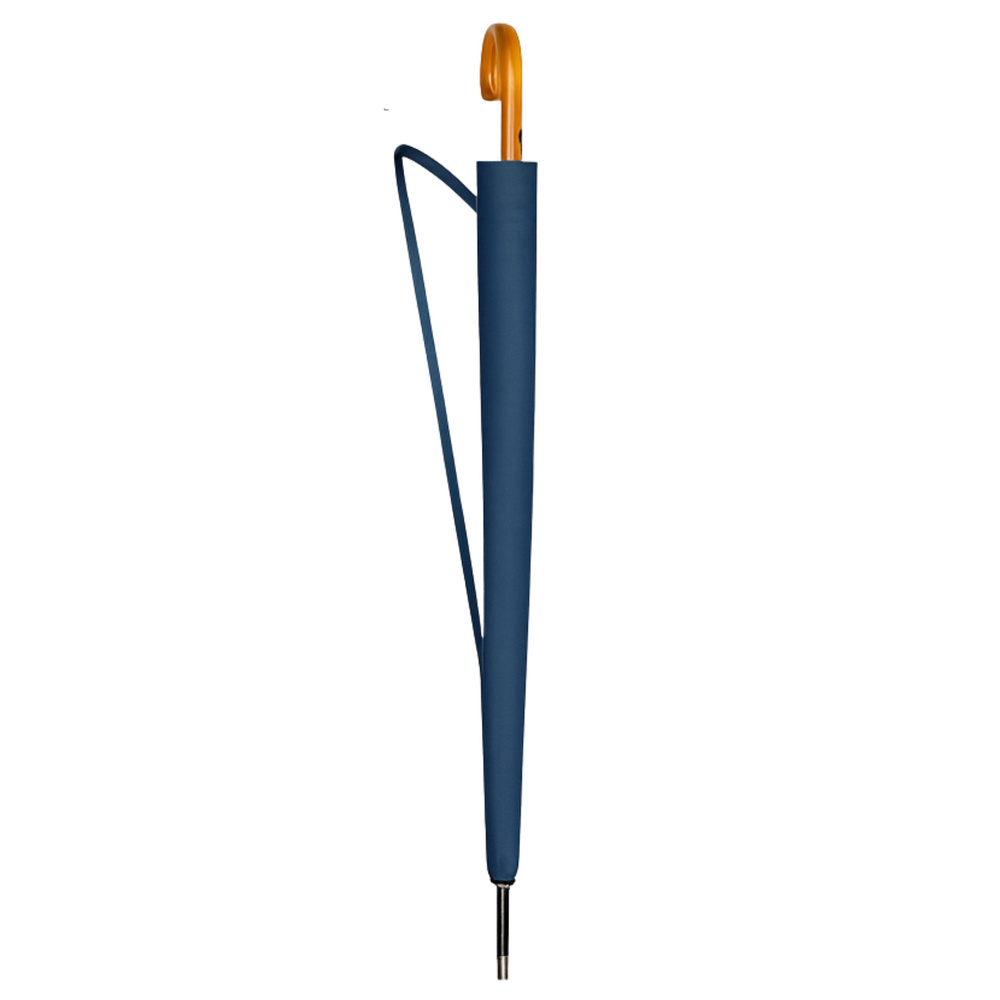Drewniana, elegancka rączka nadaje parasolowi klasycznego stylu, a dołączony pokrowiec z paskiem umożliwia wygodne noszenie przez ramię. To doskonały wybór do pracy, miasta, na spacer, jak również jako prezent.