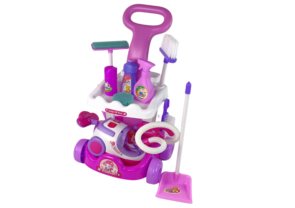 Zabawkowy wózeczek wypełniony przeróżnymi przyrządami do sprzątania to doskonały pomysł na prezent. Wesoło spędzając czas, dziecko będzie się uczyć, jak prawidłowo zamiatać i myć podłogę, czy odkurzać dywan.