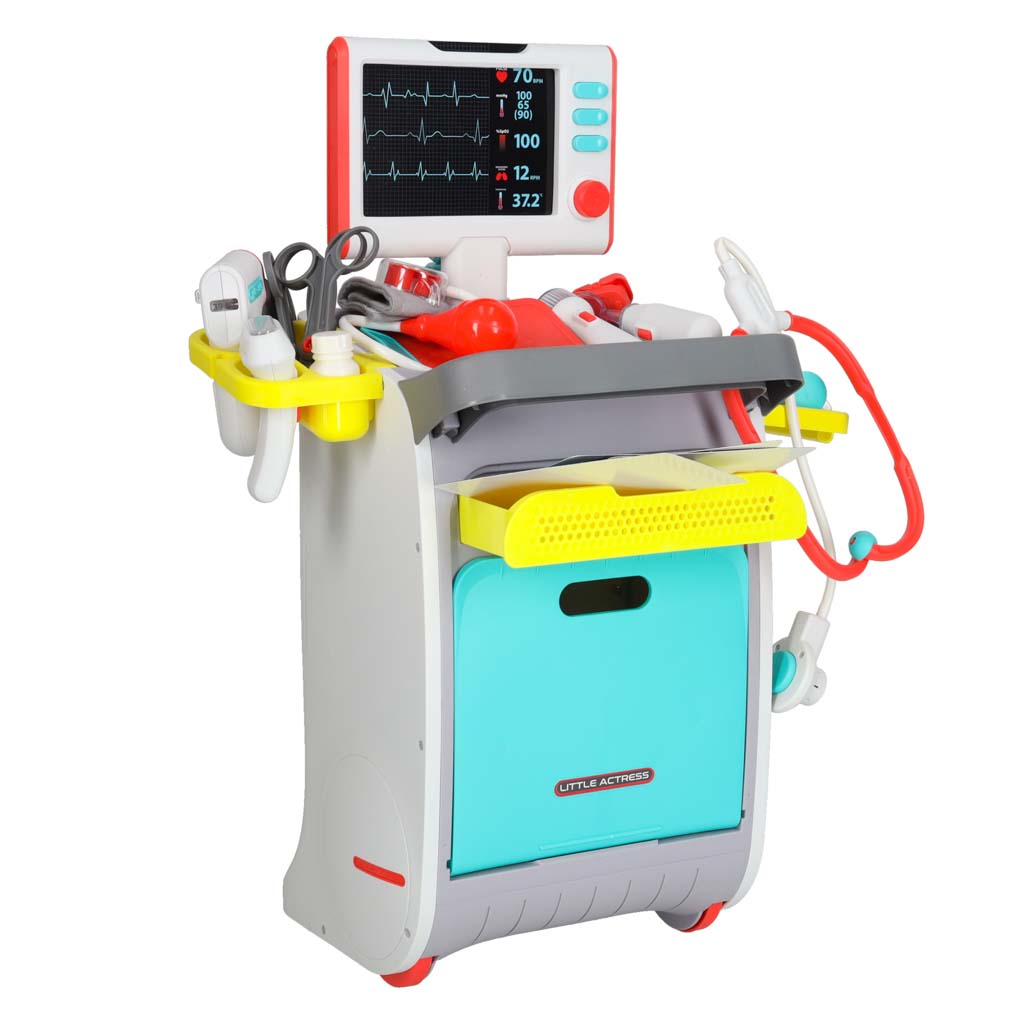 Stacja medyczna na kółkach dla dzieci jest przeznaczona dla dzieci powyżej 3. roku życia. Pozwoli pokazać najmłodszym jak wyglądają wizyty u lekarza oraz podstawowe badania medyczne. Dziecko ma do dyspozycji różnorodne akcesoria, które dodają zabawie realizmu.