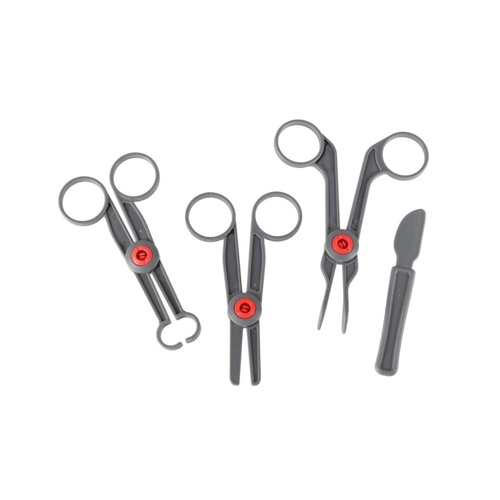 Elementy interaktywne akcesoriów: endoskop stomatologiczny, ultrasonograf i latarka świecą; termometr i stetoskop świecą oraz wydają dźwięki