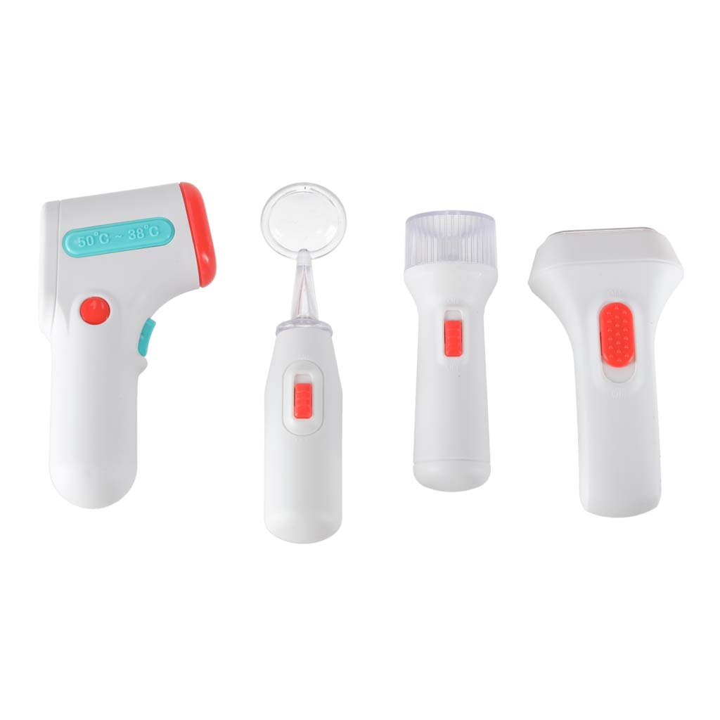 Dziecko może przeprowadzić bilans zdrowia – sprawdzić tętno, temperaturę lub zmierzyć ciśnienie. Można także sprawdzić wzrost malucha za pomocą rozkładanej miary. Ramka w kształcie ekranu pozwala umieścić obrazki przypominające zdjęcia rentgenowskie lub zapis EKG. Dodatkowo stacja medyczna działa na baterie – za pomocą przycisków można uruchamiać różne melodyjki.