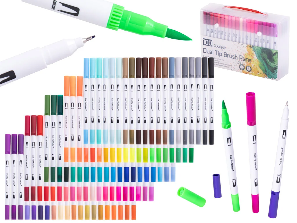 Flamastry mazaki cienkopisy dwustronne zestaw w walizce 100 kolorów