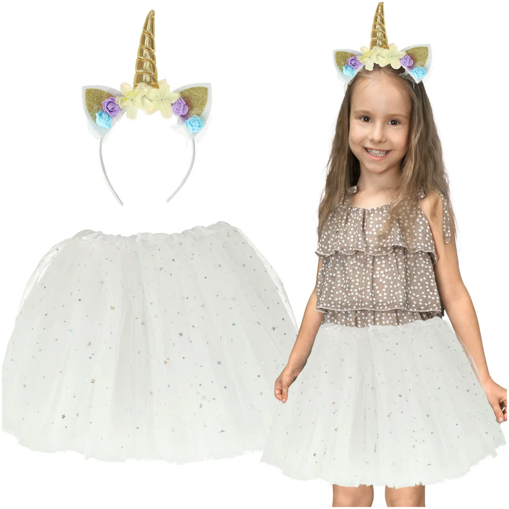 Kostium strój karnawałowy przebranie Jednorożec opaska + spódniczka tiulowa 3-6lat