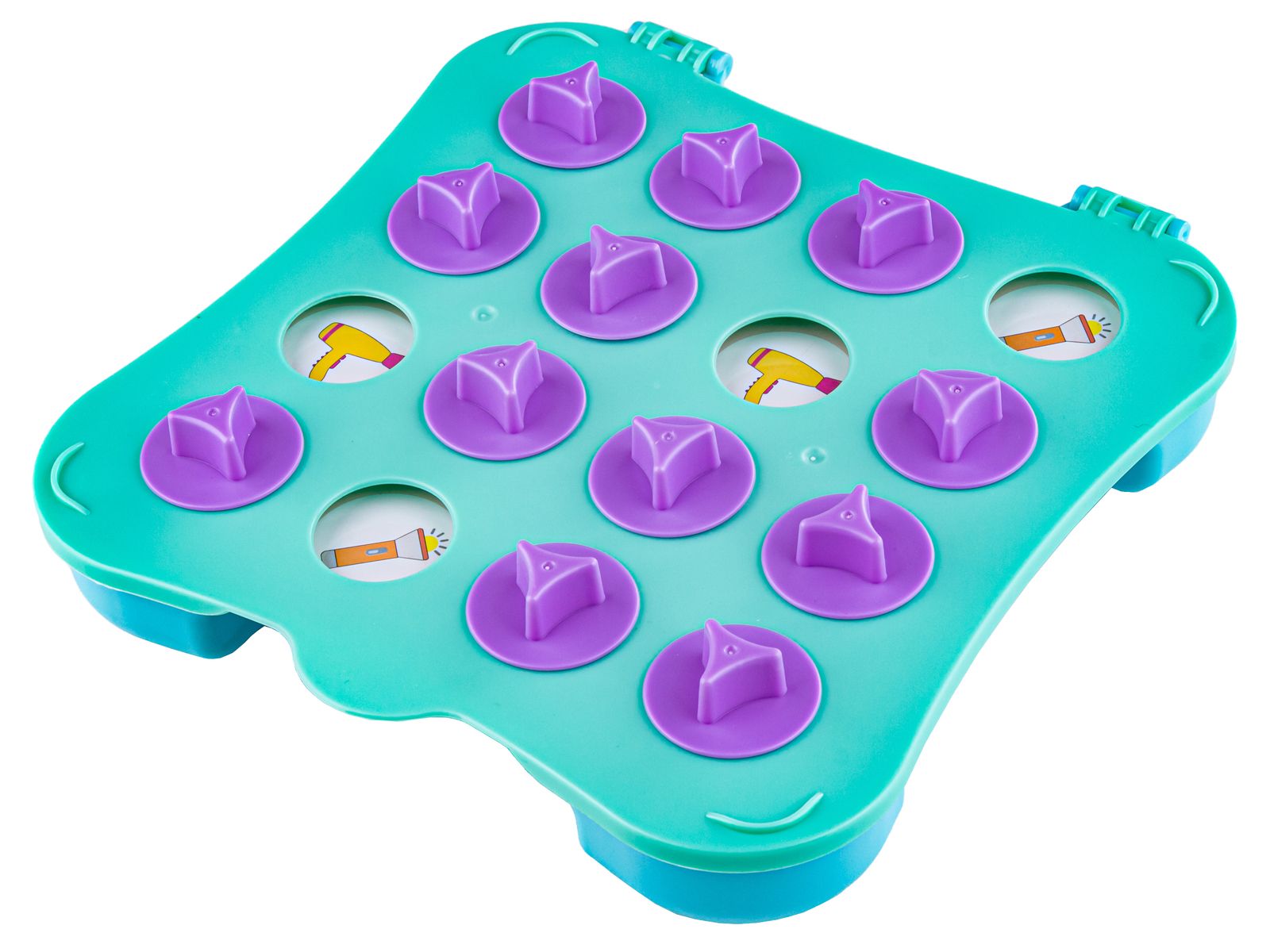 Zestaw zawiera podstawkę, w której umieszczamy wybrany przez siebie wzór obrazków. Wszystkie otworki na planszy zasłaniamy specjalnymi guziczkami. Grę rozpoczyna losowo wybrany uczestnik odsłaniając dwa guziczki. Jeżeli odsłonięte obrazki stanowią parę, to gracz zabiera guziczki i odsłania dalej. Jeśli nie trafi na kolejną parę - kolejka przechodzi na następnego gracza. Na koniec zliczamy zebrane guziczki - wygrywa osoba, która ma ich najwięcej. W celu podniesienia trudności gry można skorzystać z załączonej do zestawu klepsydry i odliczać nią czas do namysłu przy odsłanianiu obrazków :)