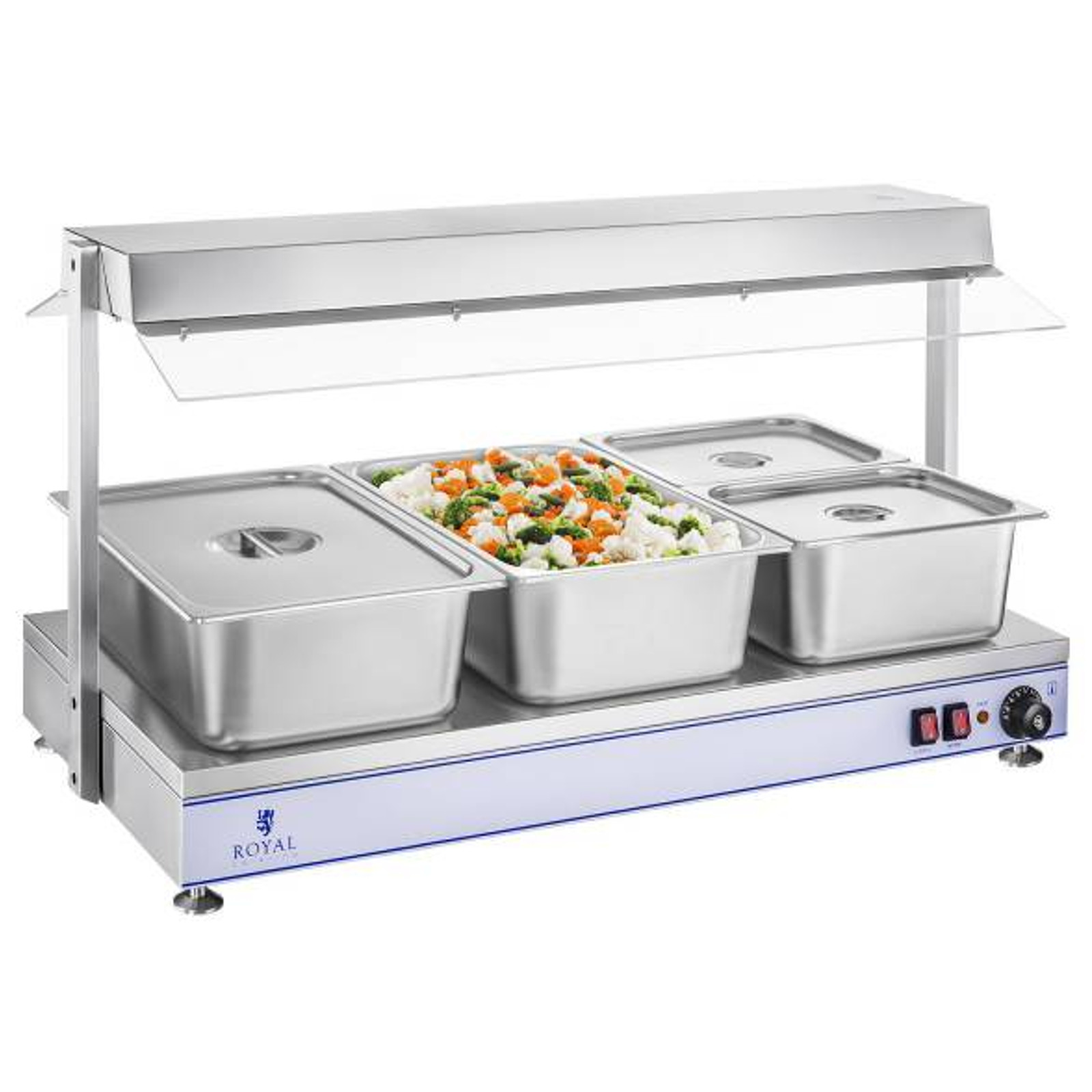 Oferujemy kompaktową elektryczną płytę grzewczą, idealną do profesjonalnego użytku w branży HoReCa. Dzięki czterem halogenowym lampom, urządzenie skutecznie podgrzewa oraz utrzymuje temperaturę żywności w przedziale od 0 do 110°C.