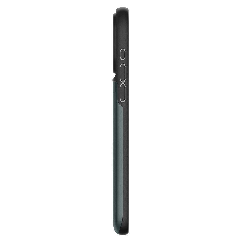 Etui jest smukłe i idealnie dopasowane do iPhone 15 Pro, co gwarantuje pełną funkcjonalność. Nie ogranicza dostępu do portów oraz interfejsów, co zapewnia wygodę użytkowania. Dodatkowo, model ten posiada miejsce na karty kredytowe, co zwiększa komfort codziennego użytkowania.