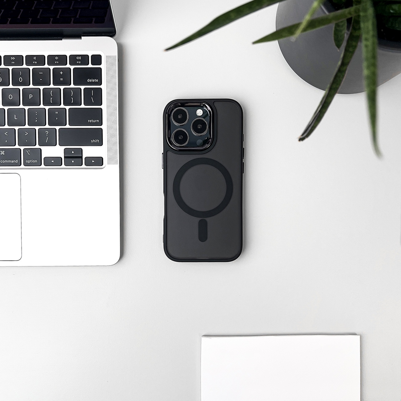 W zestawie znajduje się etui ochronne na Samsung Galaxy S24 FE Glitter Case MagSafe w czarnym kolorze z brokatem.