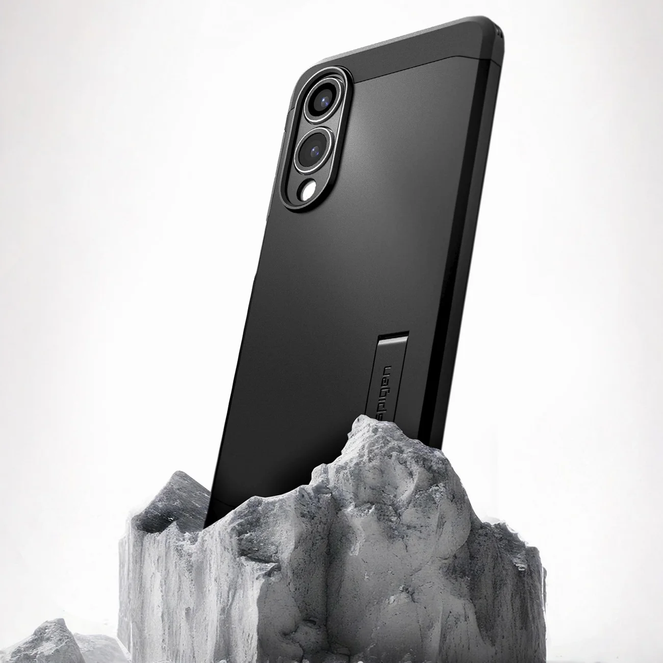 Etui jest proste w zakładaniu i zdejmowaniu, a także ma osłony na przyciski oraz wycięcia na porty. Tough Armor przeszedł rygorystyczne testy upadku, uzyskując amerykański certyfikat wojskowy MIL-STD 810G-516.6.