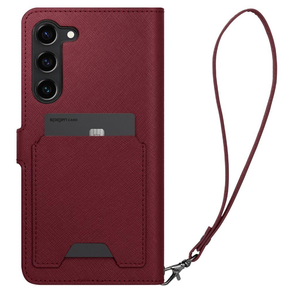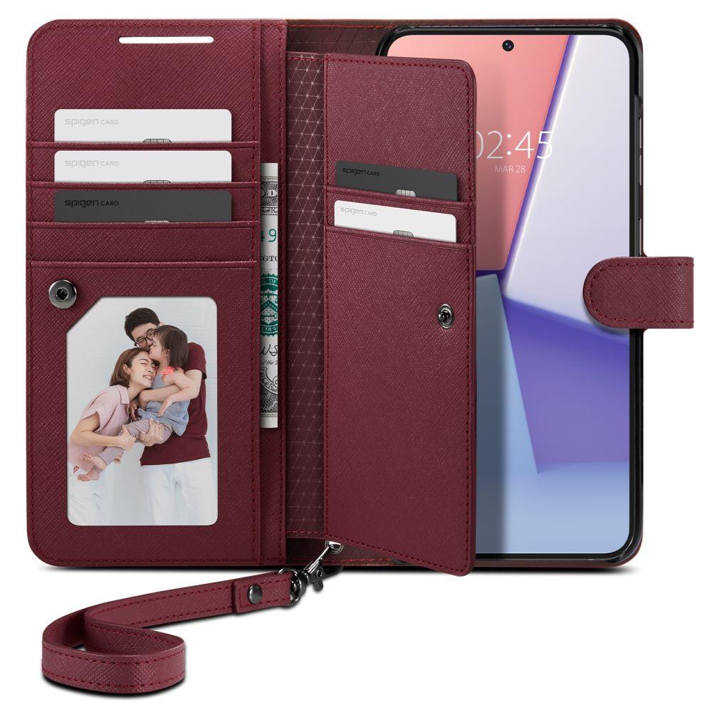 Etui marki Spigen łączy elegancję z funkcjonalnością. Wykonane z wysokiej jakości skóry PU, zapewnia trwałość i komfort użytkowania. Dzięki zintegrowanym kieszonkom na karty kredytowe oraz gotówkę, masz wszystko, co potrzebne, zawsze pod ręką.