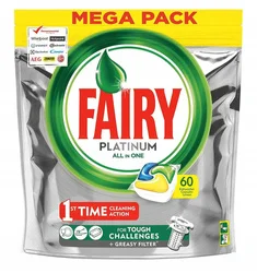 Fairy Platinum All in One to skuteczne kapsułki do zmywarki, które doskonale radzą sobie z zaschniętymi resztkami jedzenia. Dzięki zintegrowanemu środkowi wspomagającemu płukanie, działaniu soli oraz ochronie sztućców i szkła, Twoje naczynia odzyskają blask. Kapsułki szybko się rozpuszczają, nawet w niższych temperaturach, co czyni je idealnym wyborem do krótkich cykli zmywania.