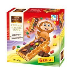 Odkryj słodką przyjemność z chrupiącą tabliczką czekolady Feiny Biscuits! Wypełniona kremem karmelowym i ozdobiona kolorowymi soczewkami z czekolady, to idealny wybór na małą przekąskę.