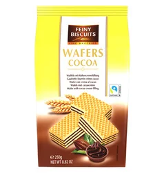 Wafelki Kakaowe Feiny Biscuits to doskonała propozycja na każdą okazję. Idealne jako przekąska w domu lub w drodze, te wafelki zachwycają delikatnym smakiem i chrupiącą teksturą. Stworzone do dzielenia się, z pewnością umilą czas spędzony z bliskimi.