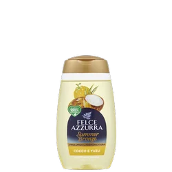 Żel pod prysznic Felce Azzurra Cocco e Yuzu to świetny wybór dla osób, które pragną zadbać o swoją skórę podczas codziennej pielęgnacji. Jego formuła została wzbogacona o łuskę orzecha włoskiego, co pomaga w dłuższym utrzymaniu opalenizny. Dodatkowo, składniki aktywne działają zmiękczająco i odżywiająco na skórę.