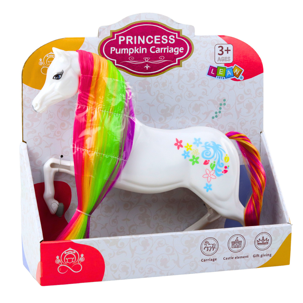 Uroczy biały koń z długą, kolorową grzywą i ogonem to idealna zabawka dla wszystkich małych miłośników bajkowych światów. Figurka została zaprojektowana z myślą o dzieciach od 3. roku życia, zachwyca pastelowymi barwami i delikatnymi zdobieniami, które nadają jej magicznego charakteru. Grzywa i ogon wykonane są z miękkich, kolorowych włókien, które można czesać i stylizować, co czyni zabawkę nie tylko atrakcyjną wizualnie, ale też angażującą manualnie.